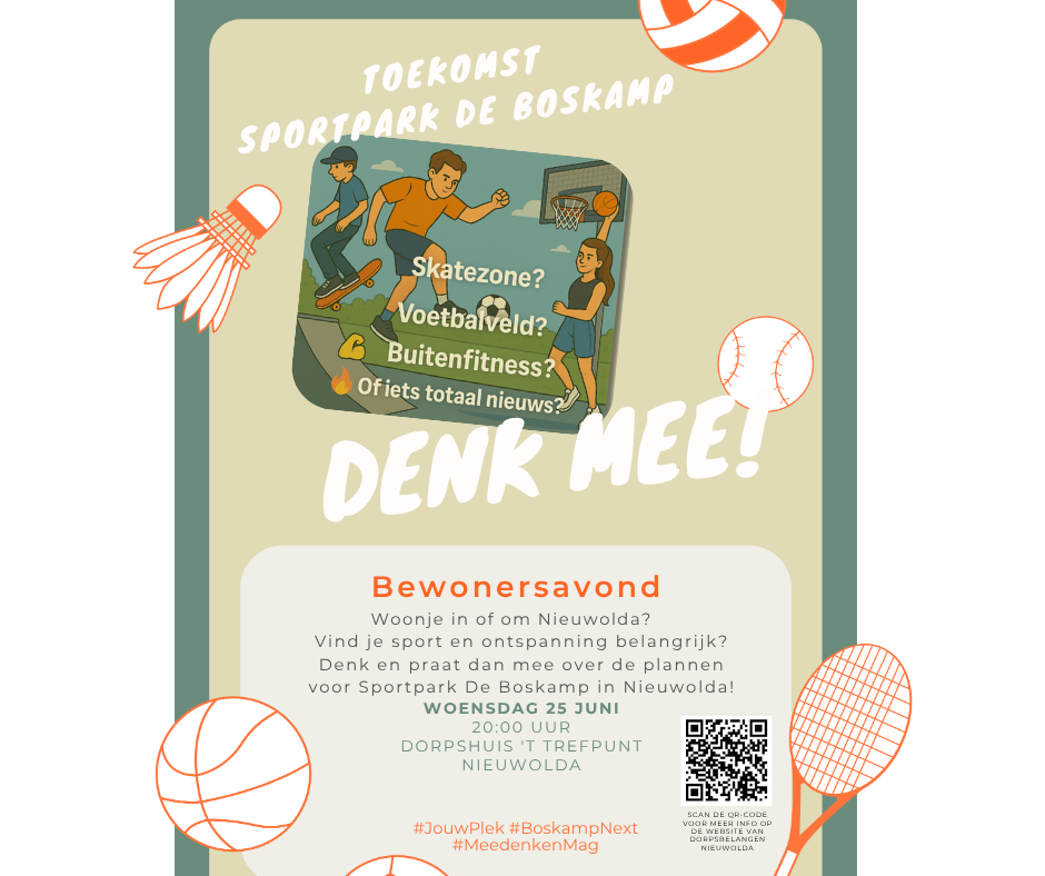 Denk en praat dan mee over de plannen voor Sportpark De Boskamp in Nieuwolda!